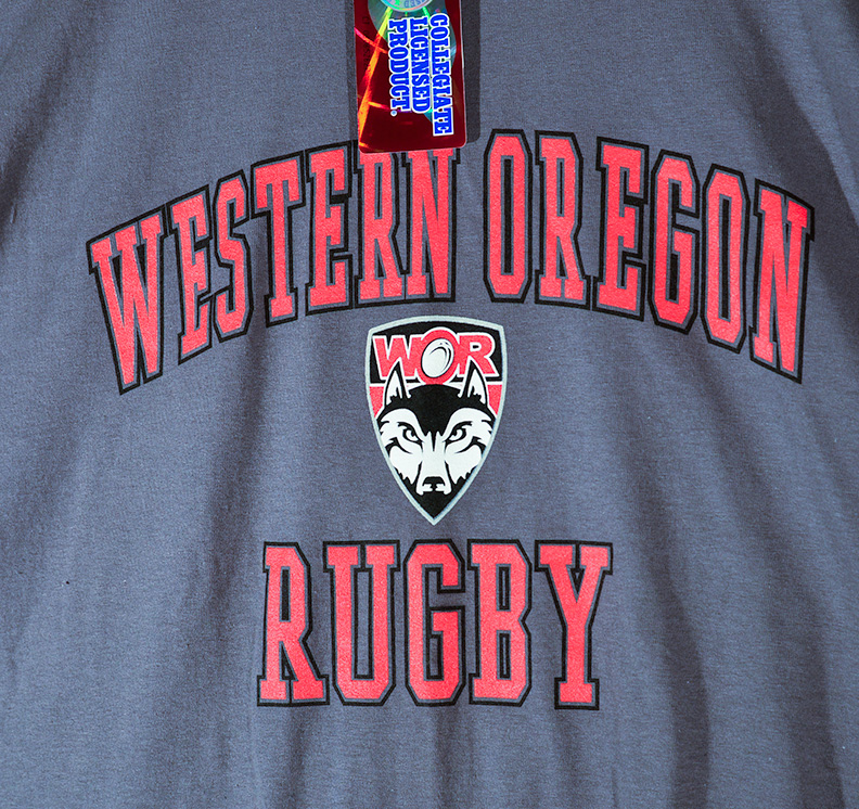 Rugby was “club” not a “team” sport, so they were not able to use the official logo for Western Oregon University. My design is maybe a little too close to the original… but the school ended up making shirts and selling them at the student store.